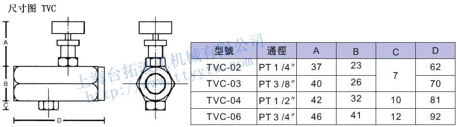 TVC -03 系列号码 称呼口径 管式单向节流阀